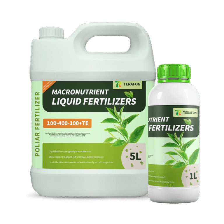 Terafon® 100‑400‑100 + TE Liquid Fertilizer is a high-phosphorus, water-soluble solution designed to support critical reproductive growth stages, including flowering, fruit set, and early yield formation. The elevated phosphorus content enhances root vigor, energy transfer, bloom quality, and seed development, while supplemental potassium maintains physiological balance and improves stress resilience.